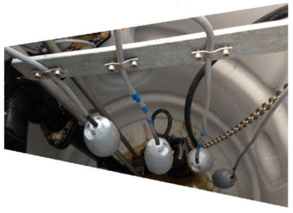 Le support de régulateur en TE HOMA en INOX permet la mise en place de quatre régulateurs de niveaux au global. La fixation des régulateurs à flotteurs lestés s'effectue grâce à des colliers de serrage disposés le long de la barre horizontale du support.